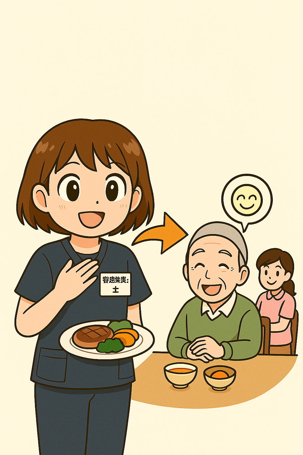 同じ年齢の入所者様であっても、咀嚼機能や嚥下機能はそれぞれ違います。 食事については、大量調理であるため個人対応には限界がありますが、今より少しでも食事形態の幅を広げ、口腔機能の低下がみられても、食べることができる食事を増やしていきたいと考えています。 これからも、施設のスタッフや厨房スタッフと相談し、密に連携を図りながらより更に良い食事の提供ができるように努めていきます。