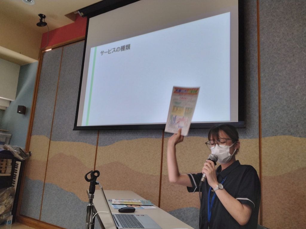 次にケアハウス第三親和園の嶋村介護員より、在宅サービスの種類等について解説しました。
