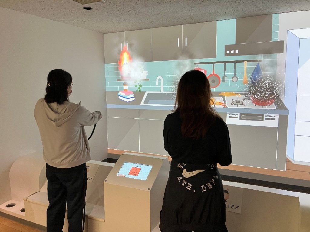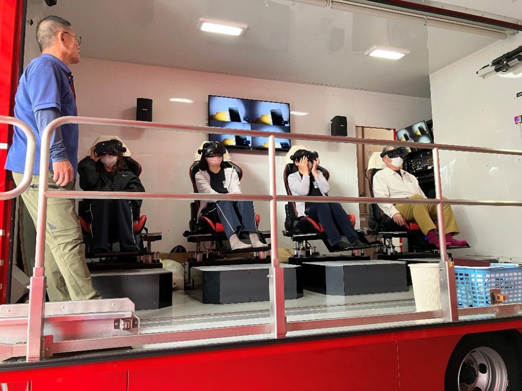◆VR防災体験車で、地震時のリアルな部屋の様子や地震により火災がどのように起こり、その火災からどのように避難すればよいのかを体験学習訓練をしました。
