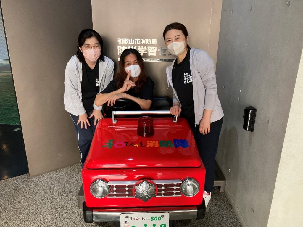 10月24日に特別養護老人ホーム親和園の三職種(介護職・看護職・管理栄養士)職員で和歌山市消防局防災学習センターに訪問し、災害体験学習訓練をしました。